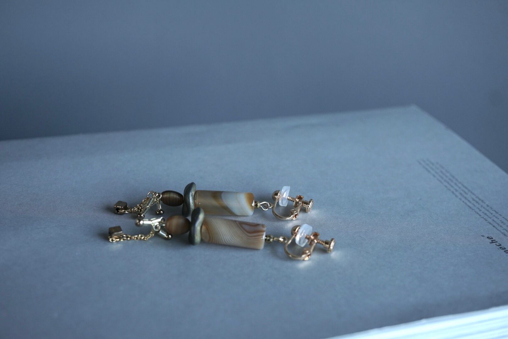 シリンダー型のブラウンアゲートはひとつひとつの柄が楽しめる天然石ビーズ。